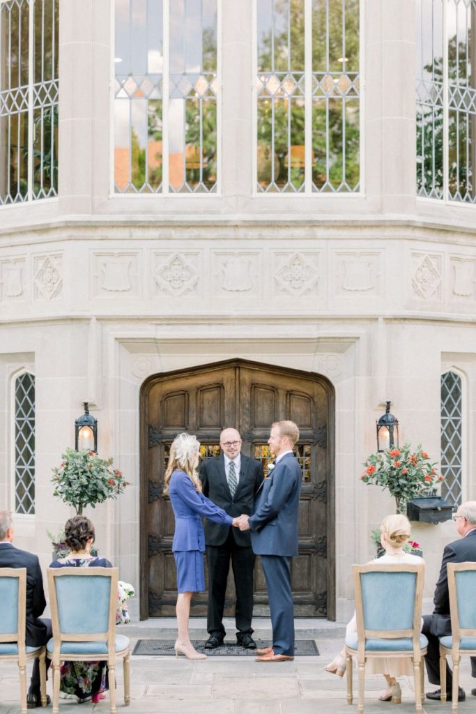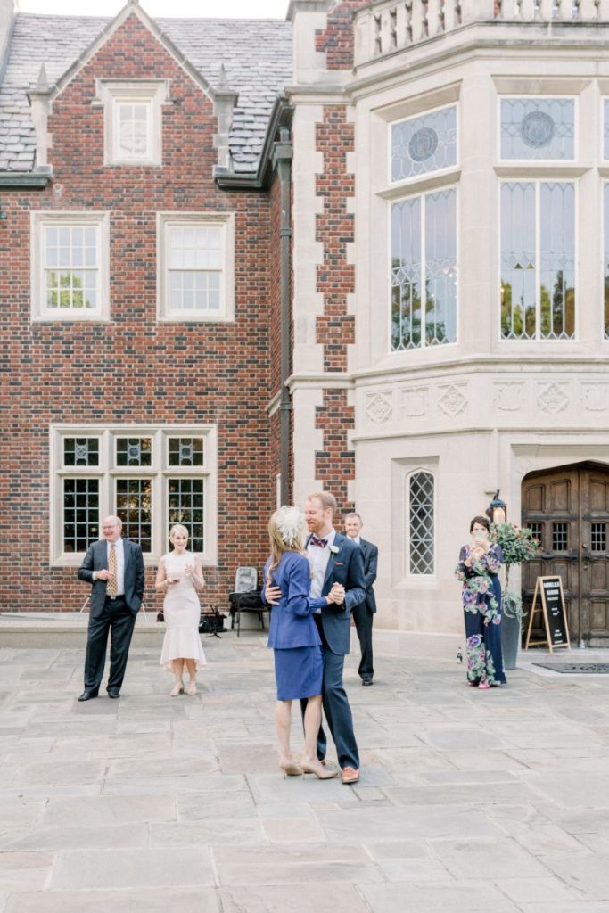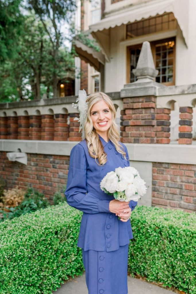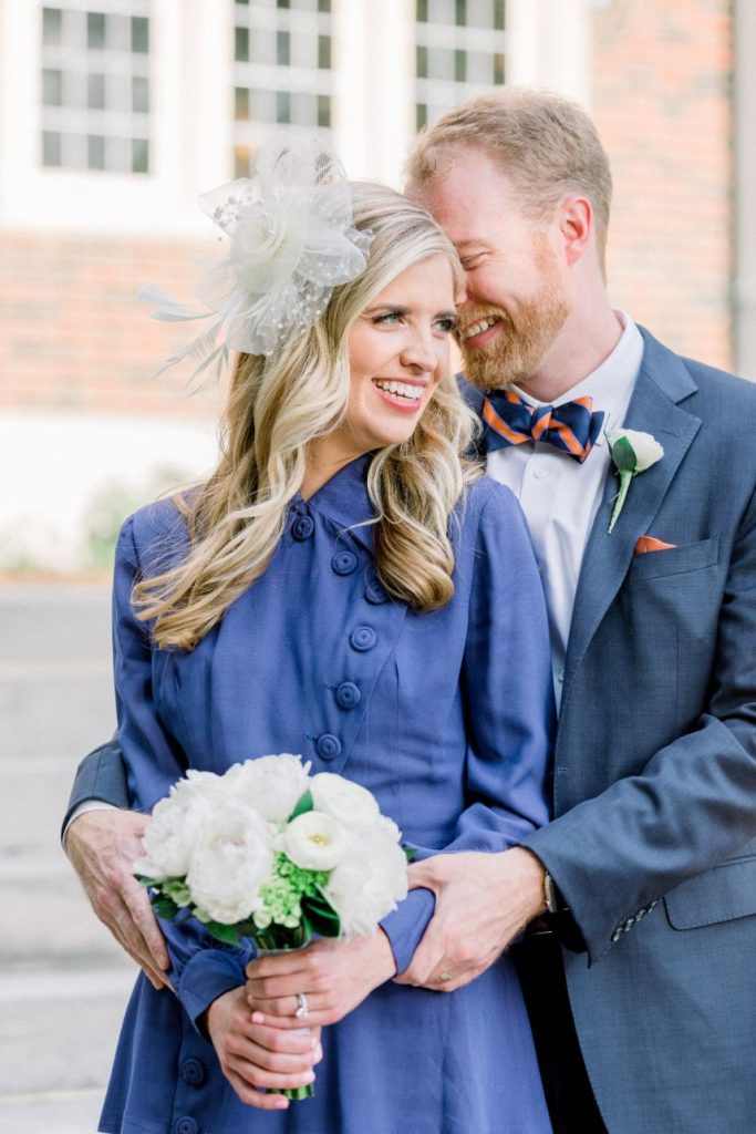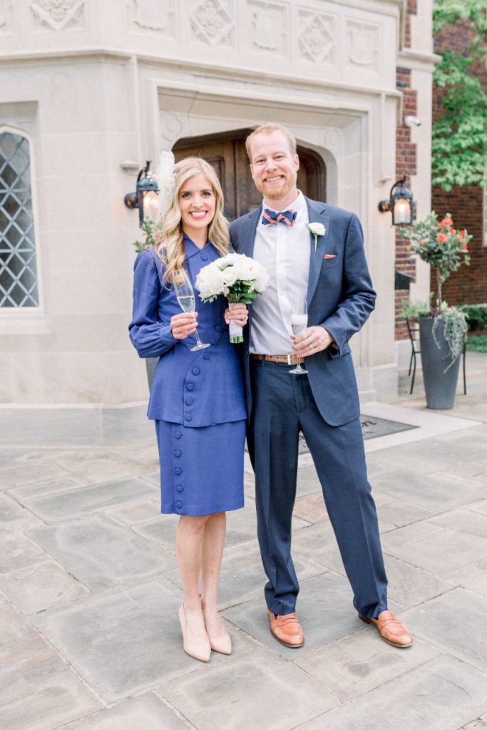 From the bride: “The wedding day was very different than what we had originally planned – it was so simple but yet so special. I was very calm, much more so than I ever thought I’d be on the day of my wedding. A few of my bridesmaids surprised me with a morning mimosa, and I spent the hours before the ceremony with my mom getting ready. I wore my grandmother’s wedding dress that she wore when she married my grandfather 70 years ago. She was a special person in my life, and by wearing her dress, it felt like everything was the way it was supposed to be. The Harwelden Mansion was our original venue, and we wanted to be at that location when we said our first vows. Cliff, along with his parents and my mom arrived a few minutes prior. My stepdad waited with me around the corner until it was time to start. As soon as my feet started walking, I looked up at Cliff and tears started racing down my face. As I walked toward him and he smiled so big, everything else in the world stopped. I was overwhelmed by the amount of love I felt in that moment as Cliff and I made a lifelong promise to each other. There was so much going on in the world, and yet I was still able to marry the love of my life in the presence of both our parents with my siblings watching from afar. I don’t know how a day during a global pandemic could get any better. Following the ceremony, our closest friends surprised us with a drive-by parade. Although we couldn’t celebrate with them as we intended, it was another perfect addition to our more than perfect day. We had an intimate dinner in my parent’s backyard afterward. Cliff and I read our letters to each other aloud and soaked in the promise we had just made, with the four people who have supported us the most through this journey. Looking back to when we first started planning our wedding, I wanted the experience of saying ‘I do’ in the presence of our family and friends with a big celebration, but also the stillness of an intimate ceremony. Now we’ll have the best of both worlds and an incredible story to tell our grandchildren. We can’t wait to celebrate our love again this fall with all we intended to share it with!”