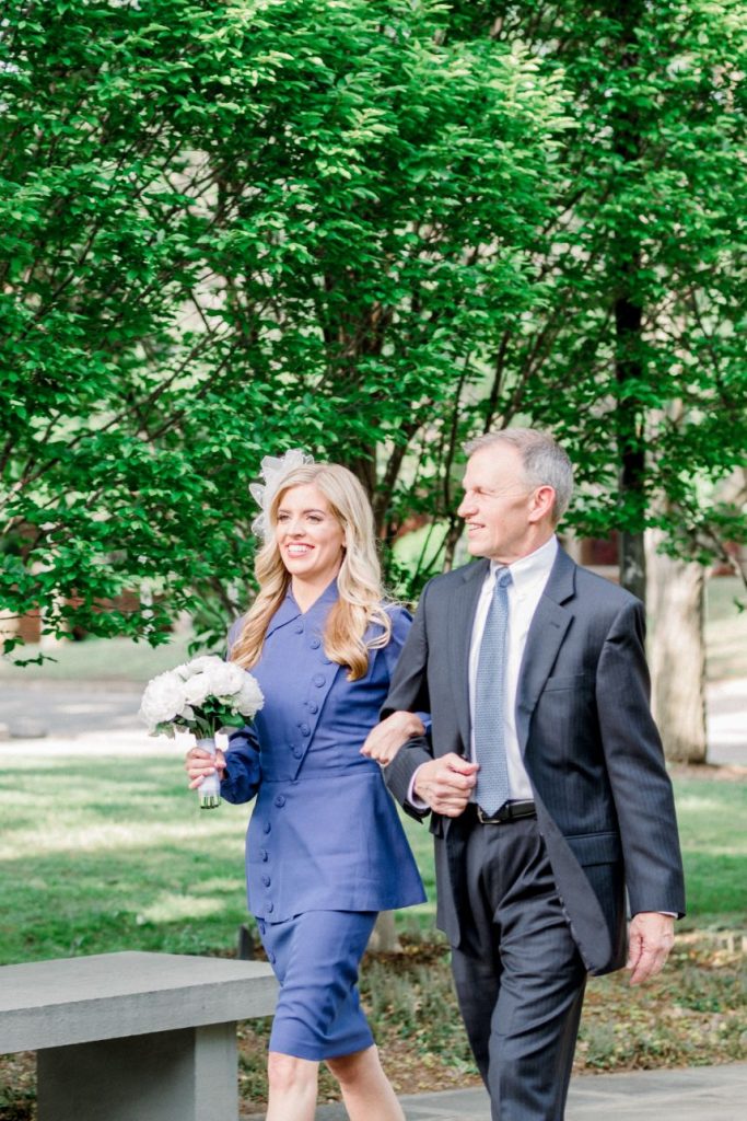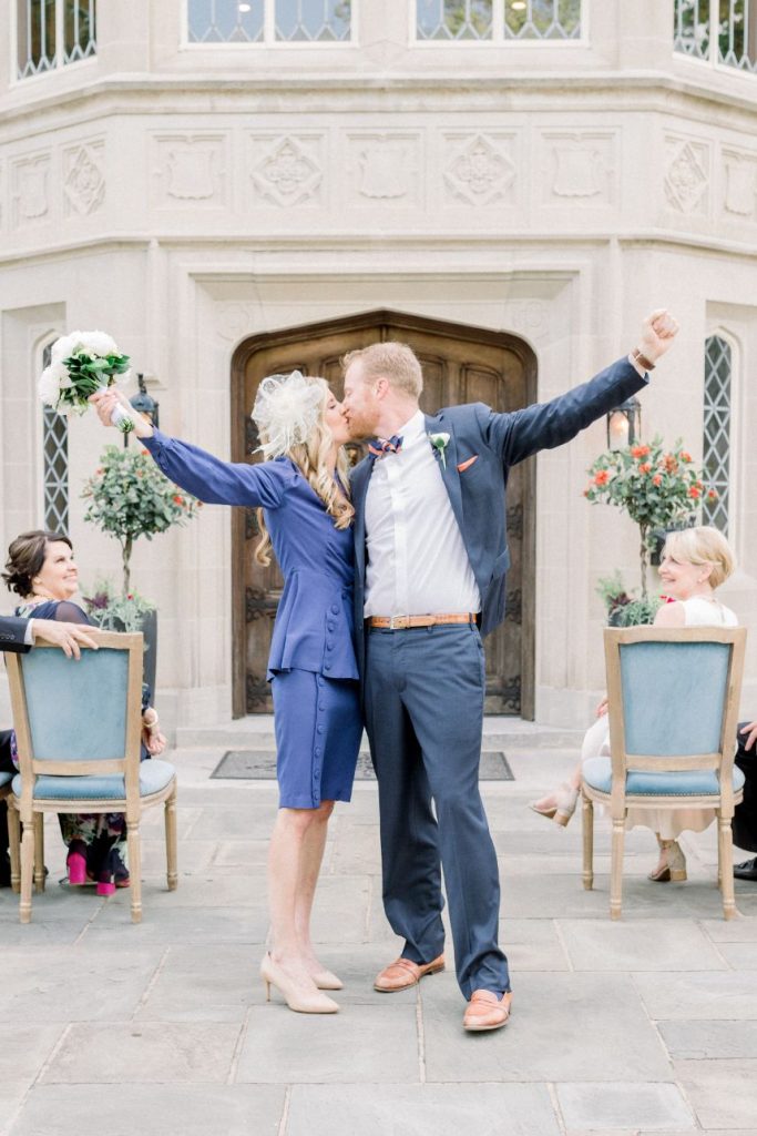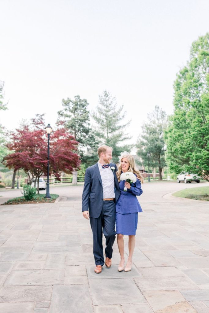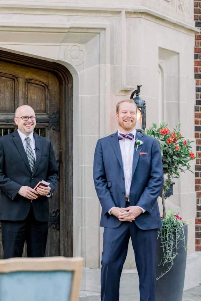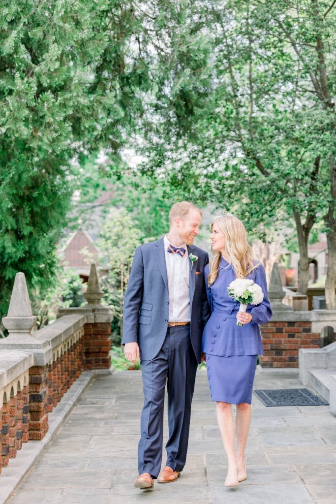 From the bride: “The wedding day was very different than what we had originally planned – it was so simple but yet so special. I was very calm, much more so than I ever thought I’d be on the day of my wedding. A few of my bridesmaids surprised me with a morning mimosa, and I spent the hours before the ceremony with my mom getting ready. I wore my grandmother’s wedding dress that she wore when she married my grandfather 70 years ago. She was a special person in my life, and by wearing her dress, it felt like everything was the way it was supposed to be. The Harwelden Mansion was our original venue, and we wanted to be at that location when we said our first vows. Cliff, along with his parents and my mom arrived a few minutes prior. My stepdad waited with me around the corner until it was time to start. As soon as my feet started walking, I looked up at Cliff and tears started racing down my face. As I walked toward him and he smiled so big, everything else in the world stopped. I was overwhelmed by the amount of love I felt in that moment as Cliff and I made a lifelong promise to each other. There was so much going on in the world, and yet I was still able to marry the love of my life in the presence of both our parents with my siblings watching from afar. I don’t know how a day during a global pandemic could get any better. Following the ceremony, our closest friends surprised us with a drive-by parade. Although we couldn’t celebrate with them as we intended, it was another perfect addition to our more than perfect day. We had an intimate dinner in my parent’s backyard afterward. Cliff and I read our letters to each other aloud and soaked in the promise we had just made, with the four people who have supported us the most through this journey. Looking back to when we first started planning our wedding, I wanted the experience of saying ‘I do’ in the presence of our family and friends with a big celebration, but also the stillness of an intimate ceremony. Now we’ll have the best of both worlds and an incredible story to tell our grandchildren. We can’t wait to celebrate our love again this fall with all we intended to share it with!”