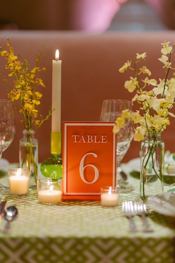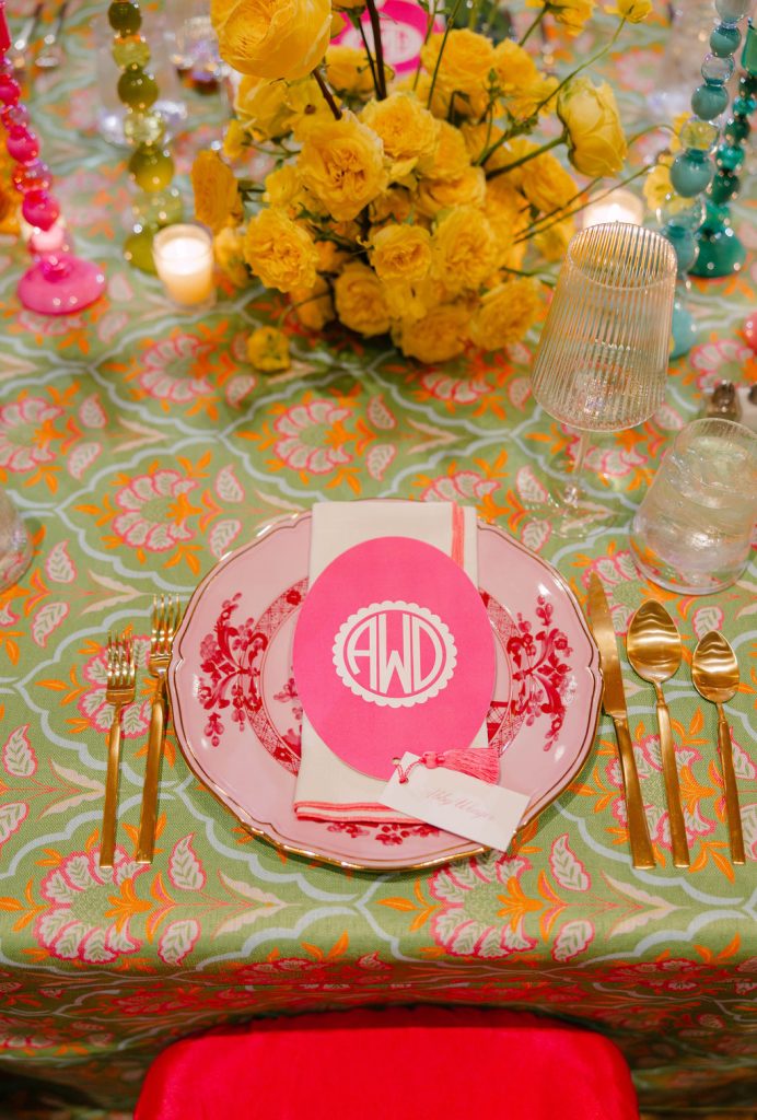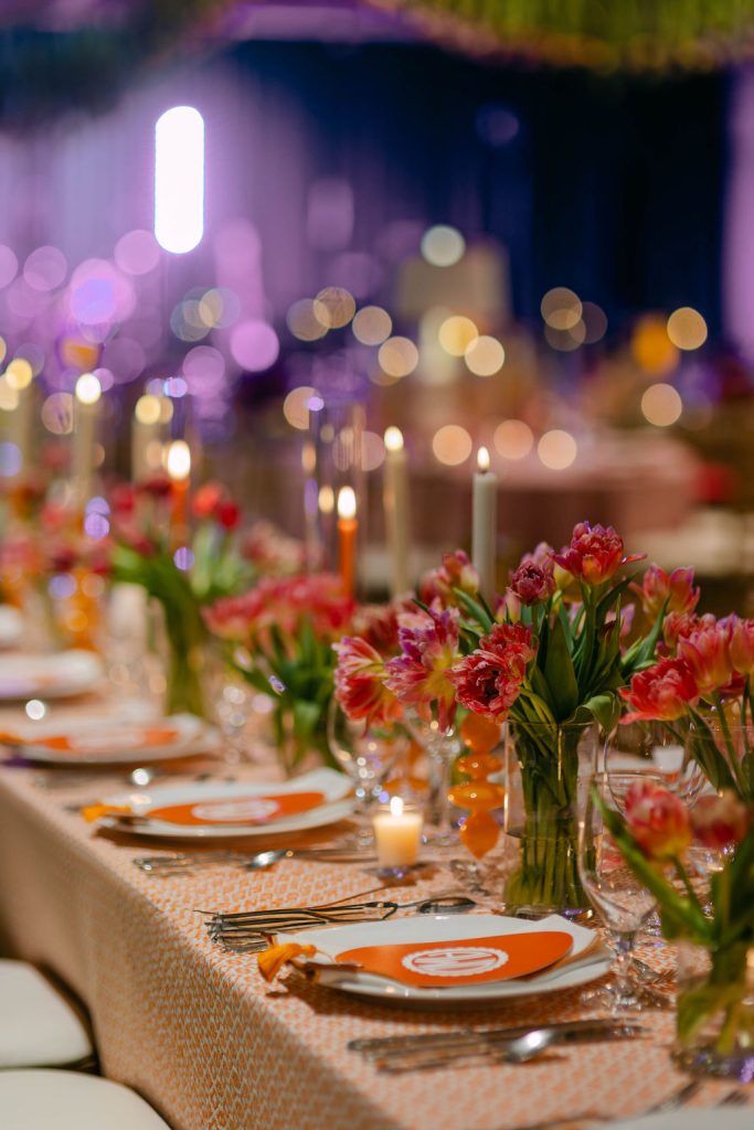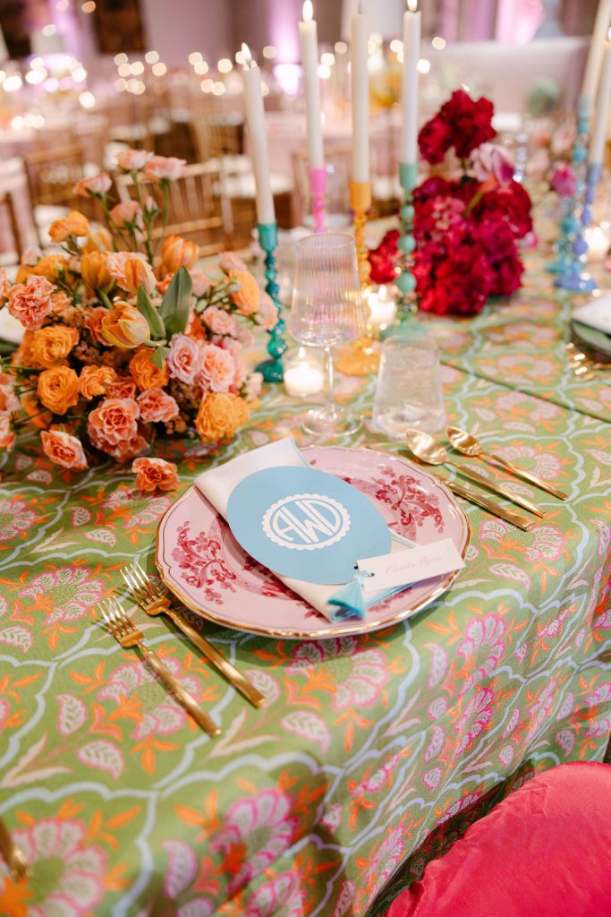 Once at the reception, guests were welcomed by a lively palette of décor and rentals from Marianne’s Rentals and luxe linens from BBJ La Tavola. The vibrant pops of color struck the perfect balance of sophistication and fun, setting the stage for an elegant yet energetic celebration.