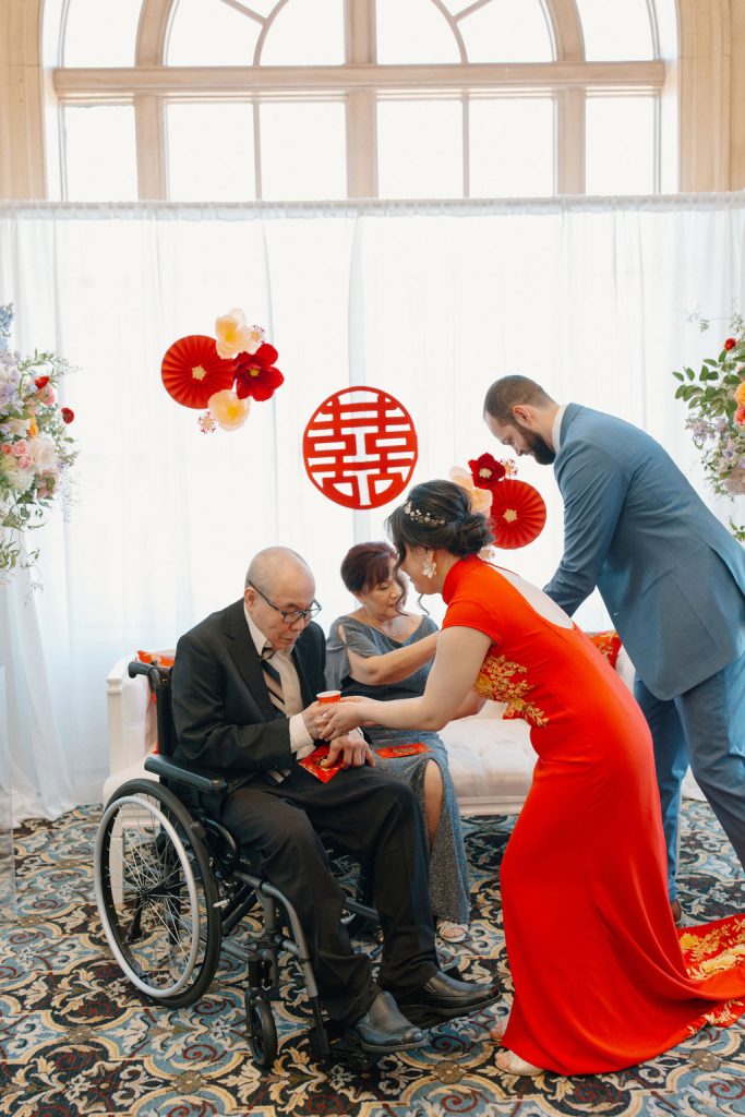 “We celebrated my Chinese culture by hosting a tea ceremony at our wedding. Throughout the ceremony, I got emotional getting to see my family and honoring them, especially our older relatives who made the long trip to come and celebrate with us. The tea ceremony was a perfect, intimate ceremony between us and our families, and we couldn’t imagine not including this pivotal celebration as a part of our wedding day!” – Anh & Alex