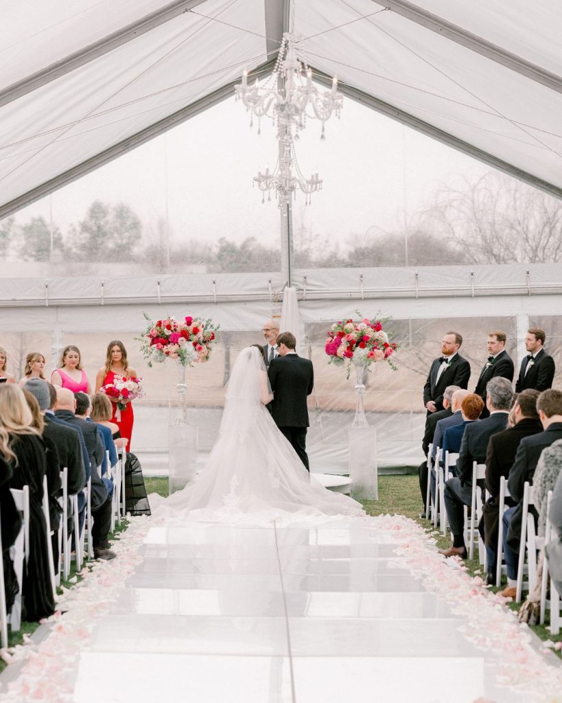 Katelyn & Colby’s Valentine’s Day weekend wedding at The Bower was a romantic celebration full of heart—literally and figuratively! Planned by Embellished Weddings, their day embraced the holiday with a timeless pink and red palette, beginning with a heart-adorned invitation suite by Paper + More. They said “I do” beneath a clear tent on the venue’s scenic grounds, setting the tone for an unforgettable day.