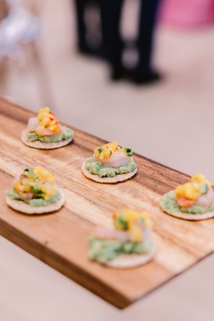 The reception was just as dreamy, featuring a hanging floral installation by Poppy Lane Design above a custom monogrammed dance floor from Marianne’s Rentals. Guests enjoyed delicious food and drinks from Abbey Road Catering and danced the night away thanks to Box Talent. A beautiful cake by Amy Cakes was the cherry on top of the sweet celebration. Snowfall during the evening made for stunning portraits captured by Kristen Edwards Photography. As a sweet lead-in to the big day, QS Culinary catered the rehearsal dinner—setting the stage for a weekend full of love and celebration. The couple also registered locally with BC Clark, making it easy for guests to celebrate them meaningfully.