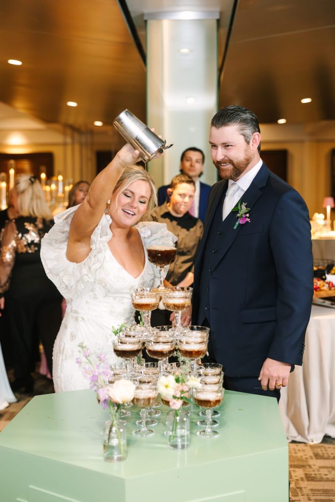 “Every moment with my bridesmaids and the espresso martini tower was top-notch, but honestly, the best moment of all was reaching out for Taylor at the end of the aisle after lifting my veil.” – Mackenzie⁠