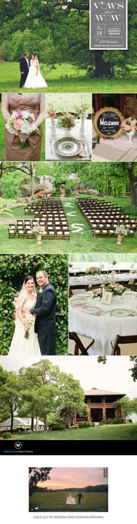 Lauren and Justin’s vintage outdoor wedding captured by Amanda Watson Photography at Skelly Lodge has us swooning! It was a rainy day when Lauren and Justin tied the knot, but luckily the sky cleared long enough for the couple to say their “I Dos” in the gorgeous outdoor setting they had dreamed of. We love the mixture of pink, gold and lace seen throughout this sweet soiree and can’t wait to share their beautiful wedding in our Spring/Summer 2013 issue! Be sure to check out their fabulous wedding highlight video captured Pen Weddings. Enjoy!
