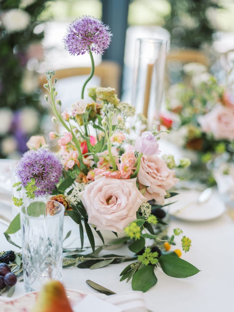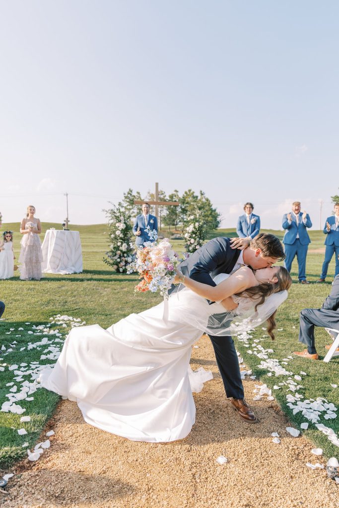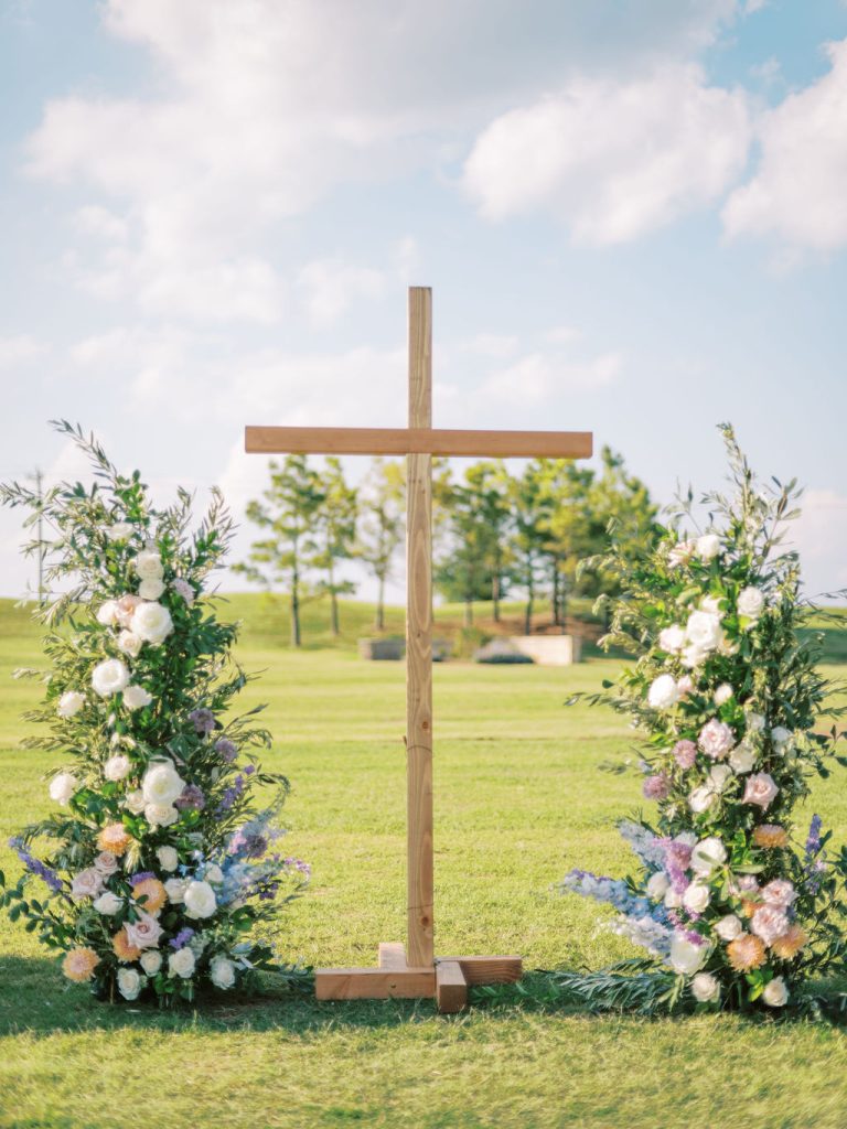 Additionally, Robyn’s Flower Garden designed pastel bouquets that beautifully complemented the bridesmaids’ mismatched dresses, creating a cohesive yet personal touch. This soft color palette added a romantic vibe, blending seamlessly with the market theme. The ceremony florals featured stunning arches, setting the scene for a breathtaking outdoor ceremony.