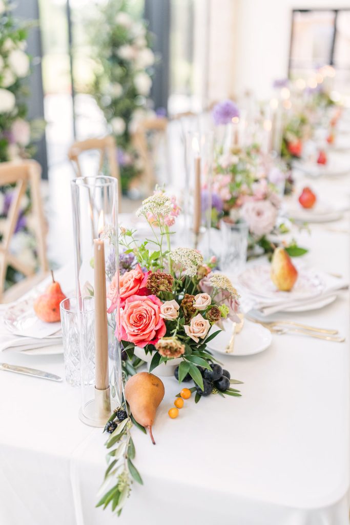 Reagan and Zakary’s wedding at The Bower was a breathtaking celebration designed with charm and thoughtful details. Inspired by a European Farmer’s Market, Harper Mae Events crafted the day with a palette of neutral tones accented by fresh pops of color. Styled with natural elements like pears, the space exuded warmth and liveliness, echoing the charm of a bustling marketplace. Altogether, the decor and rentals from Marianne’s Rentals, plus striped linen napkins from BBJ La Tavola, completed the authentic ambiance.