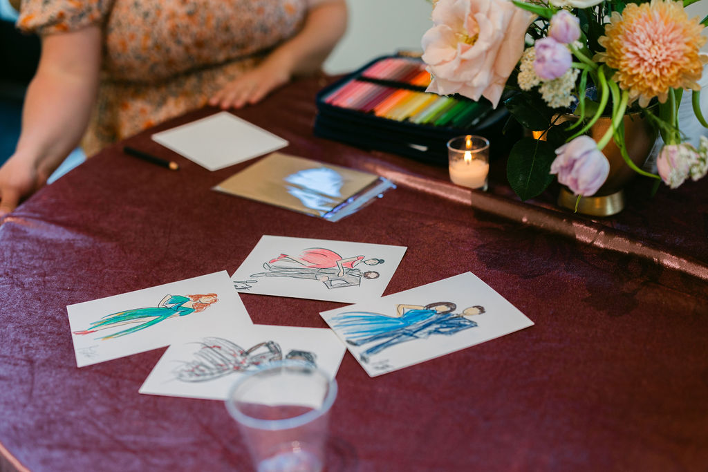 The reception was a highlight, featuring delicious cuisine by QS Culinary and European market-inspired desserts by Mishelle Handy Cakes, giving guests plenty of tasty options. Meanwhile, to enhance the guest experience, Jenny Elton Fine Art offered live illustrations, providing a fun and memorable takeaway.