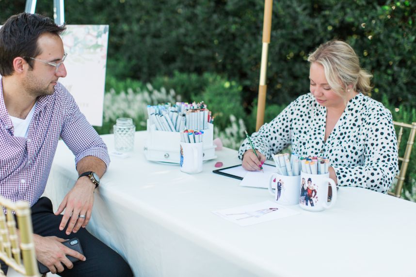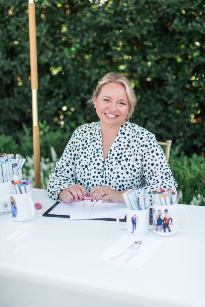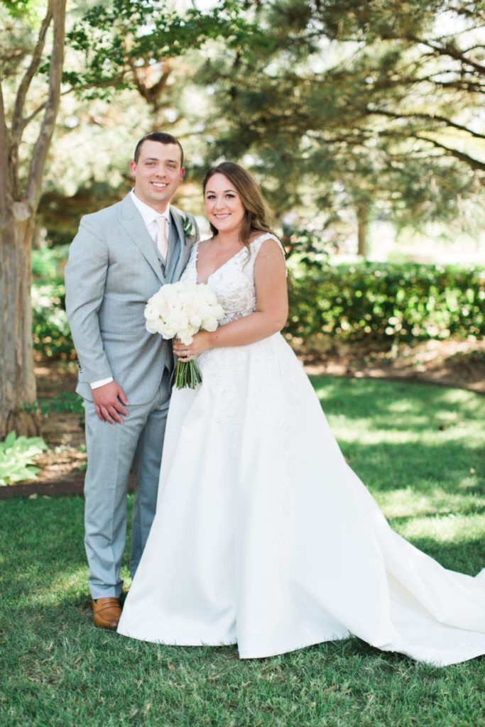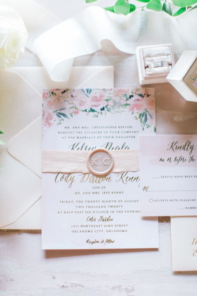 On the day of the wedding, Kelsey and Cody exchanged personal vows privately before the ceremony. It allowed the couple to have a vulnerable moment without the pressure of guests watching. Kelsey looked absolutely stunning as she walked down the aisle to meet Cody. Kelsey glowed from head to toe with her effortless beauty look from Brushed Salon and Makeup Studio. Kelsey’s sparkly must-see ring from BC Clark Jewelers completed her bridal look. After the couple joined together as Mr. and Mrs. Kenny, guests enjoyed hors d’oeuvres and drinks from Abbey Road Catering before heading inside for dinner. At the same time, guests were also treated with a special keepsake to take home with live illustrations by Amy Lee Illustration. The newlyweds felt all the love from friends and family before leaving their garden soirée and heading back to the Waterford Hotel in Oklahoma City. Keep scrolling to see more of this modern garden party wedding and a sweet note from our Bride. Cheers to Mr. and Mrs. Kenny!