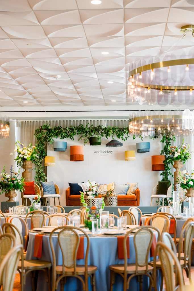 Planned by the oh-so-talented Borrowed Charm, this year’s OKC event was held at the stylish Lively Hotel on OAK, where wedding pros gathered to mix, mingle, and of course, connect. The space bloomed with lush floral arrangements by Cariad Blooms. Borrowed Charm added character and style with thoughtful rentals, from chic lounge furniture and candlelit centerpieces to custom stage décor, backdrops that perfectly framed the panel, bistro tables, bar, and more. Party Perfect Event Rentals helped bring the vision to life with essential pieces like the stage, linens, plates, napkins, and guest seating that tied the entire design together beautifully.
