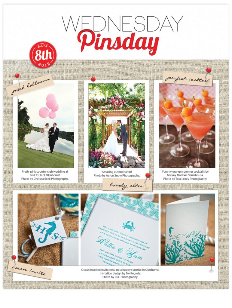 Photo credit (from top left to bottom): Venue – Golf Club of Oklahoma | Photography – Chelsea Beck Photography, Photography – Aaron Snow Photography, Cocktail – Mickey Mantle’s Steakhouse | Photography – Tara Lokey Photography, Invitation – No Regrets | Photography – BRC Photography.