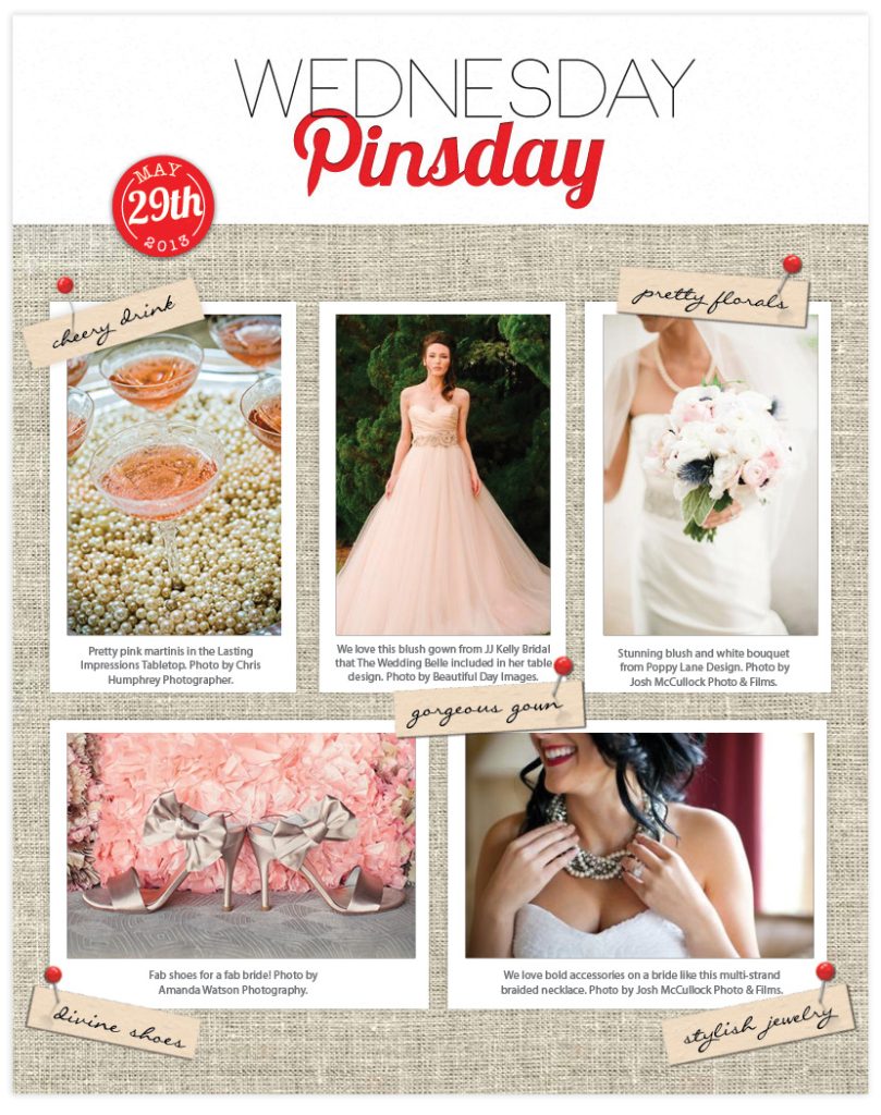 Every girl deserves to feel like a million bucks on her wedding day! Creating the perfect look takes some creative vision and hard work, and of course, the perfect pair of pumps! Shimmering shoes and sparkling champagne are a must for a stylish, suave celebration! After all, it’s all about the details, right? For today’s Wednesday Pinsday we featured a few of our swoon-worthy accents that are essential for your stunning simply chic soiree! Happy Pinning!