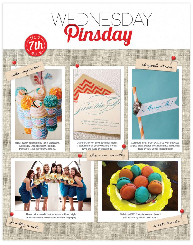 It’s that time of year — basketball season! What a better way to support our team, than an OKC Thunder inspired Pinsday! Not only are blue and orange for game day, but these complimentary colors are a fabulous pairing making for excellent wedding details! Some sweet treats, pretty patterns, and gorgeous girls is all you need to complete this look! THUNDER UP!
