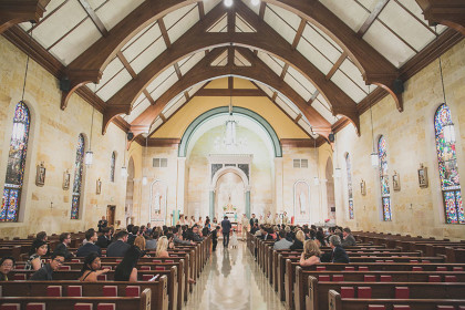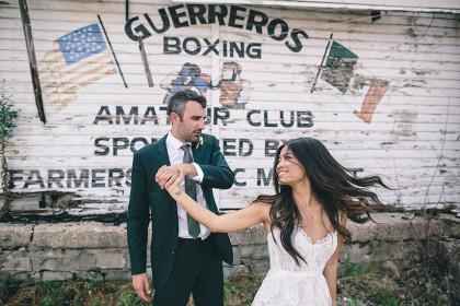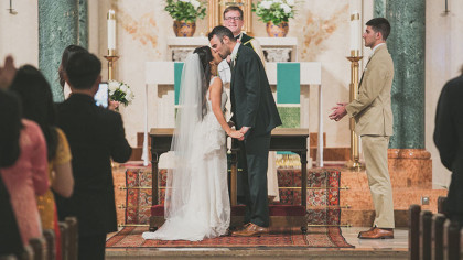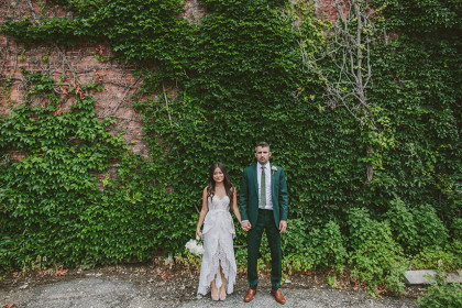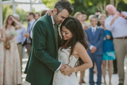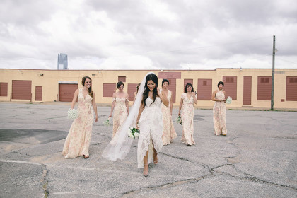 On June 13, 2015, Angela and Jared celebrated their nuptials with loved ones at Park House, where Jared had proposed. Their modern and whimsical wedding, with a hint of vintage flair, fit their styles perfectly. The ceremony was filled with simple cream, nude and dark green décor inspired by the bridesmaids’ unique dresses. Angela stunned as she walked down the aisle in a gown she designed with Carolyn Humphrey of Helen Enox Fine Fabrics. To keep with the spirit of their wedding, Angela wanted her dress to evoke a vintage feel but with modern accents. Seventeen years after meeting each other in middle school, Angela and Jared finally became Mr. and Mrs. and enjoyed the best day of their lives.