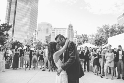 After a few years of dating, Jared planned a dinner date for the two of them at Park House on a seemingly ordinary Thursday night. Throughout dinner, Jared couldn’t stop staring at the football game on the television. Little did Angela know that Jared was shaking in his chair during the entire meal. After dinner, Jared suggested they walk to the base of the Devon Tower to take some pictures, but it began to rain. Against Angela’s wishes, they made the small trek. Before they reached their destination, Angela turned around to find Jared kneeling behind her holding up a ring. The rain didn’t bother her so much after that as she happily said yes.