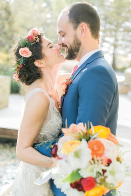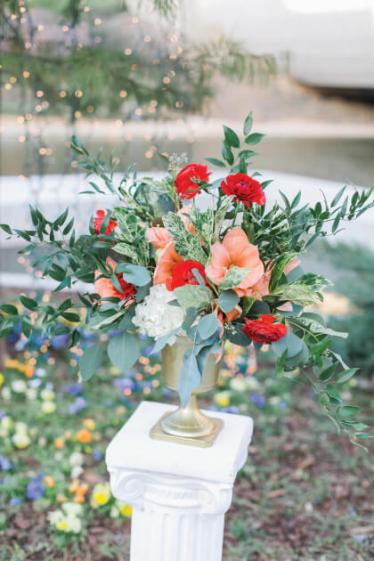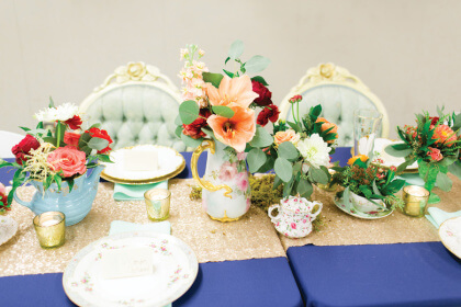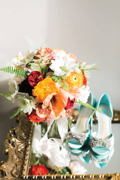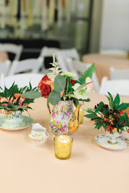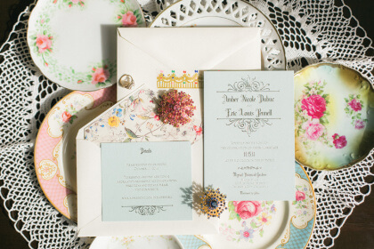 Following the ceremony, friends and family gathered inside for a whimsical reception inspired by bright flowers and antique décor the groom’s mother had collected for the wedding. Amber and Eric surprised each guest with a personal letter they had hand-painted and stamped themselves telling each loved one how much they impacted their lives and how special each person was to them. This sweet gesture was the perfect close to this love-filled celebration. The evening ended as the bride and groom were whisked away in a vintage car before heading to a romantic honeymoon in California’s Wine Country. Amber, Eric and Julian reside in Oklahoma City where the bride works as a high school counselor and the groom works as a sales representative.