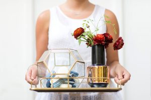 Lounge Furniture, Paper Flower Wall, Bar, Millwork Panels, Rugs, Accent Pillows, Round Table, Ghost Chairs, White Pedestals, Mirrored Coffee Table, Mirrored Accent Tables | Eventures | Wedding Styling + Rentals
