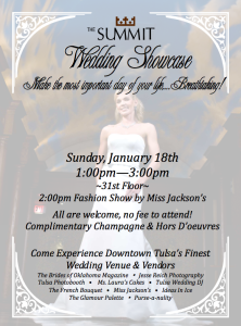 Be sure to stop by The Brides of Oklahoma’s booth at the show as well to get your complimentary copy of The Brides of Oklahoma magazine and learn more about how to get your wedding in the magazine!