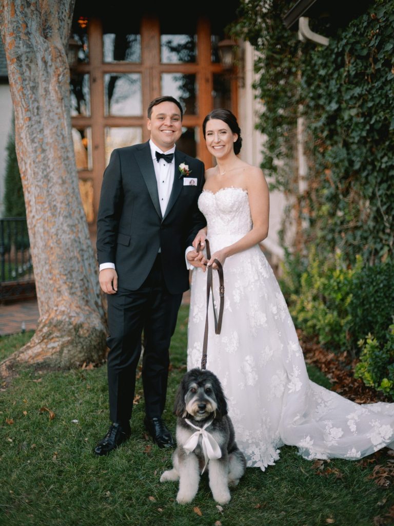 Gorgeous flowers flooded the reception at the winter wedding celebration. Traditional and personal touches were a big part of Phoebe and Matthew’s decor style. And…we always love when couple’s incorporate their furry friends into their big day!