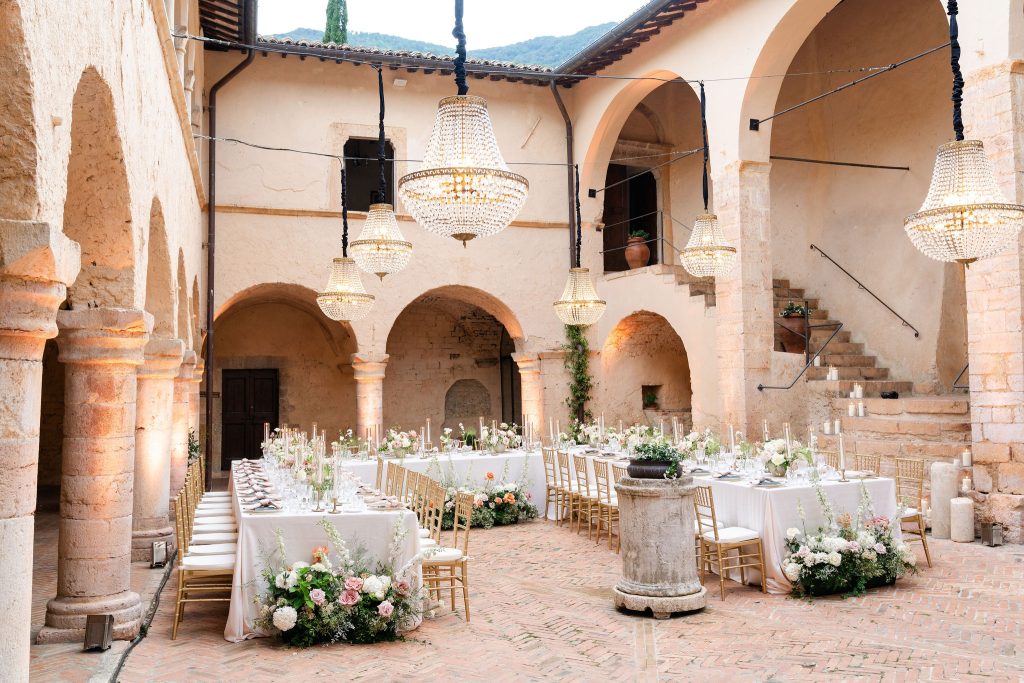 An enchanted forest comes to life in this woodsy modern fairy tale wedding scene from Embellished Weddings! A contemporary invitation suite sets the tone with a dark palette and modern vibes. That same aesthetic weaves its way into every detail, from the celestial-detailed and metallic place settings with plenty of textured linens, to the organic and overflowing florals by The Medieval Garden featuring wild berries, romantic roses and soft fronds. Runaway Belle provided a dreamy selection of vintage furniture for an intimate gathering. To complement the groom’s new-age plaid suit, the bride wore a contemporary high-neck fit-and-flare gown from Prescott Bridal, flanked by beautiful bridesmaids in black, outfitted by Prim. An all-black cake by Amy Cakes and hand-painted canvas sign and leather jacket bring even more flair to this woodsy modern scene Embellished Weddings oh-so-beautifully designed, and we are here for it all. Enjoy these photos!
