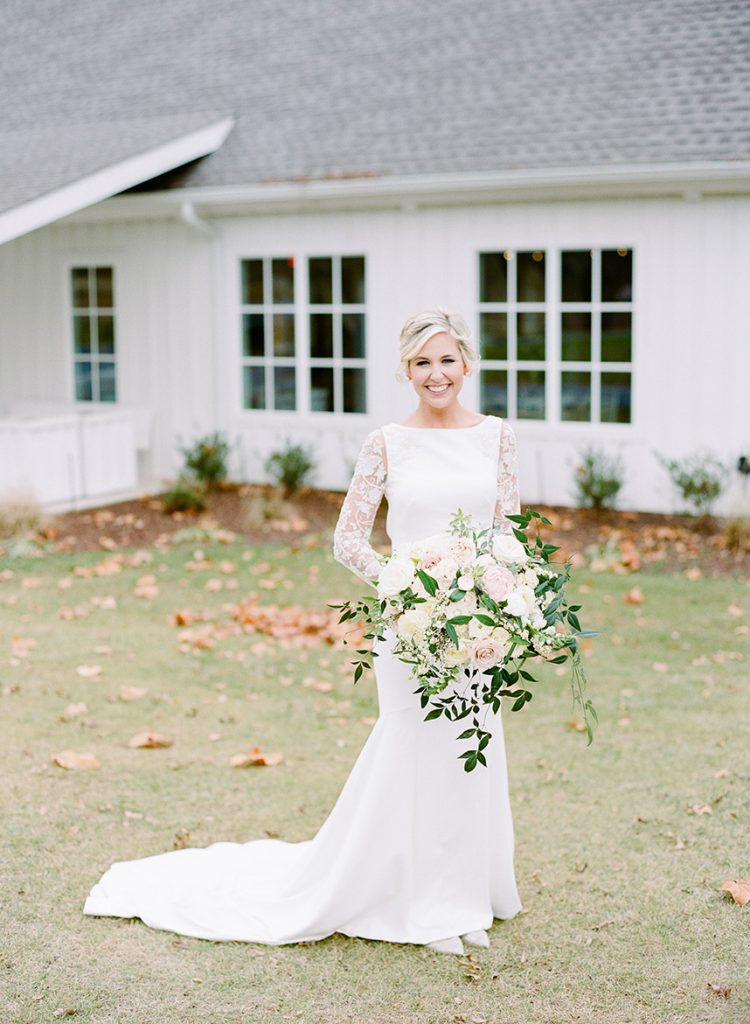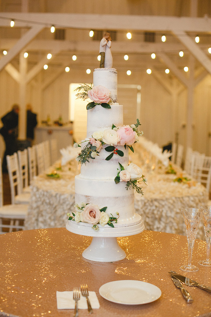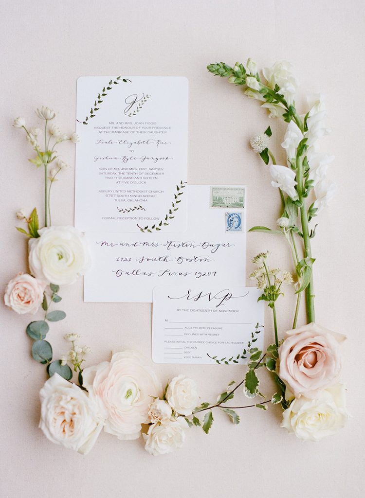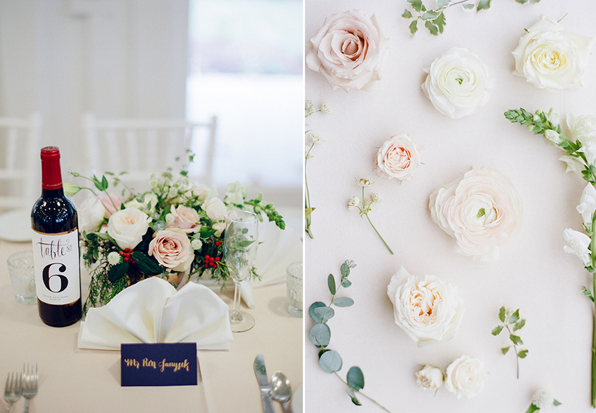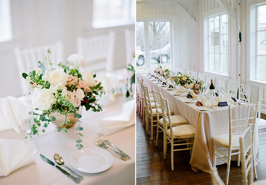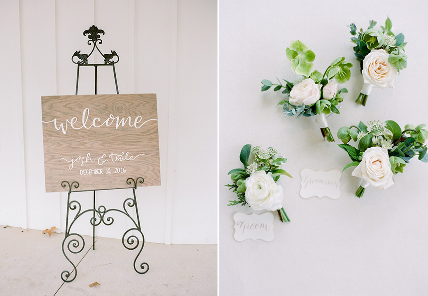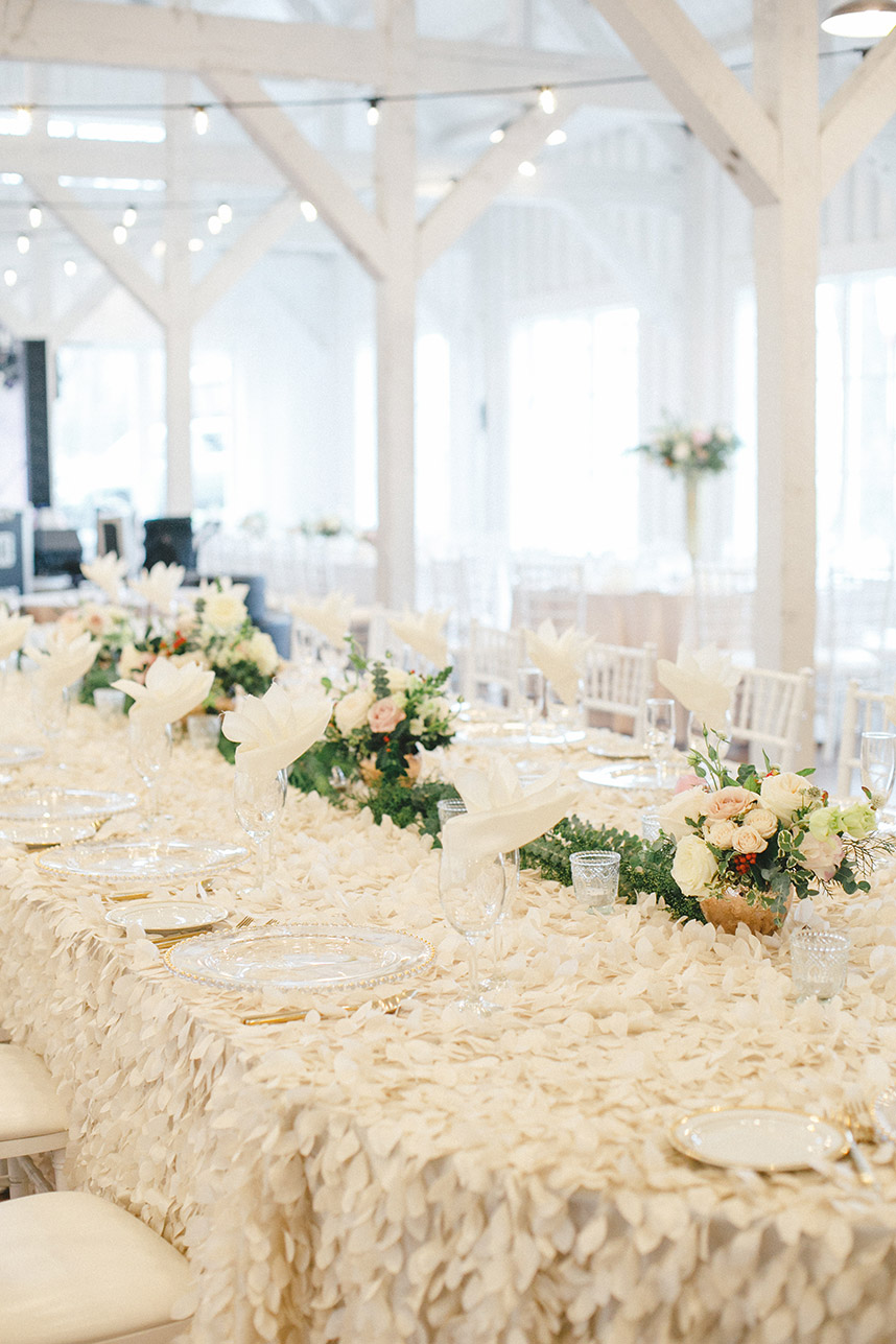 Teale and Josh’s romantic winter wedding featured a tone of traditional elegance with a hint of modern flair. Spain Ranch set the scene with the most perfect decor and rentals from Party Pro Rents, fitting perfectly into Teale’s color scheme of navy, cream and blush with pops of gold. Crisp white chairs paired with neutral table settings gave their reception space a classically polished feel. Breathtaking florals from Juniper Designs flooded the venue, from the bride and bridesmaids’ bouquets to the table centerpieces and even the cake, these blooms wowed! The bride looked gorgeous walking down the aisle in an ivory crepe mermaid gown with hand-beaded tulle sleeves from J.J. Kelly Bridal Salon and flawless makeup by Chelsey Ann Artistry. Invitations from Rachel Kathryn Designs fit the couple’s theme perfectly. Josh was clean-cut in his navy suit and wedding ring from BC Clark Jewelers. Pen Weddings did a phenomenal job of capturing every sweet detail from Teale and Josh’s special day in the video below. We’re swooning over this dreamy winter soiree!
