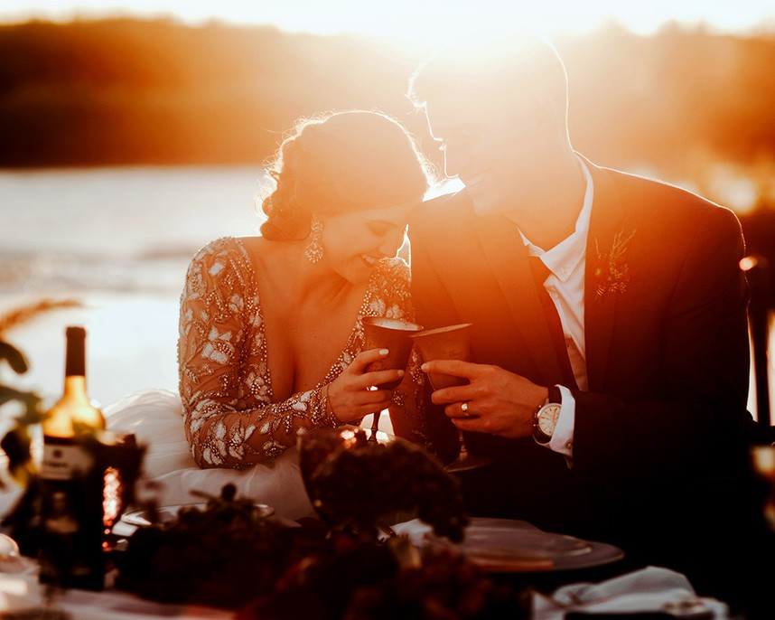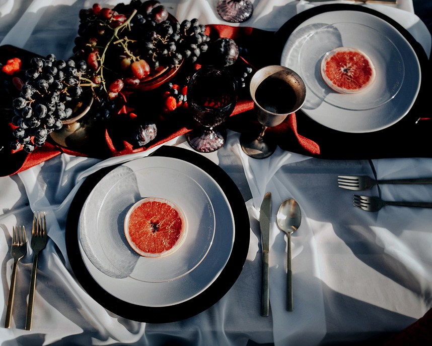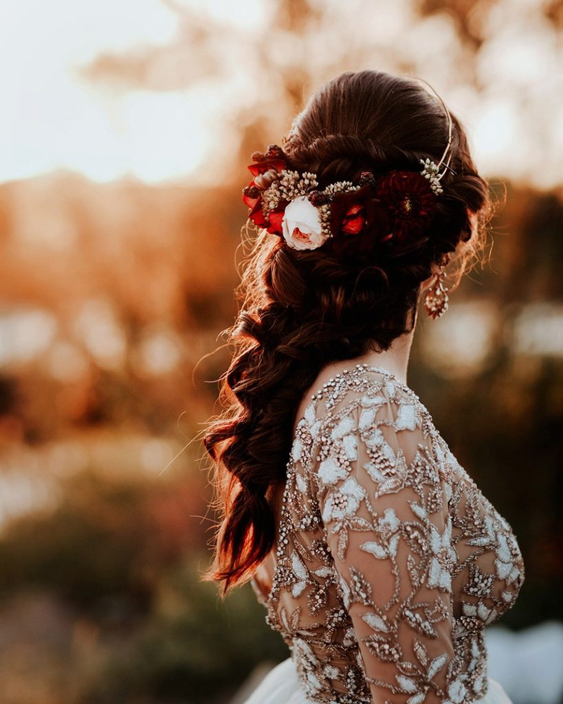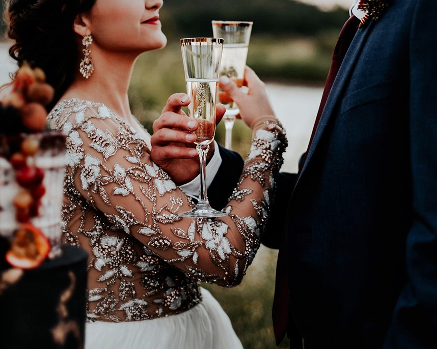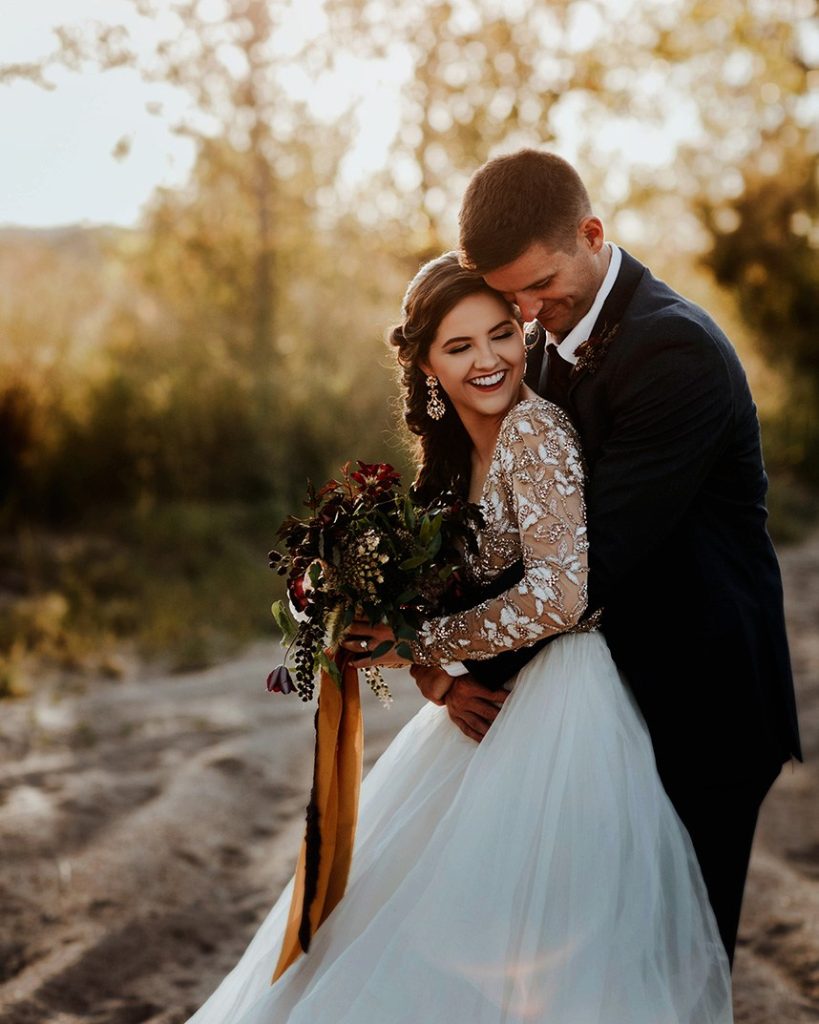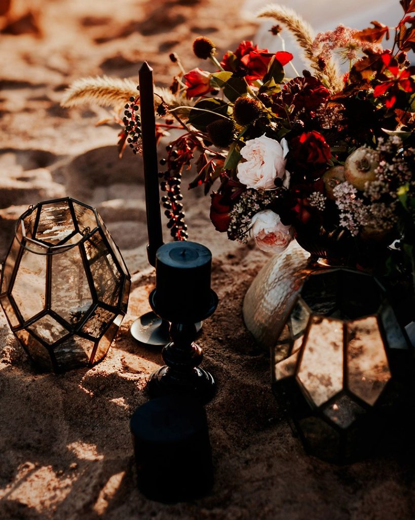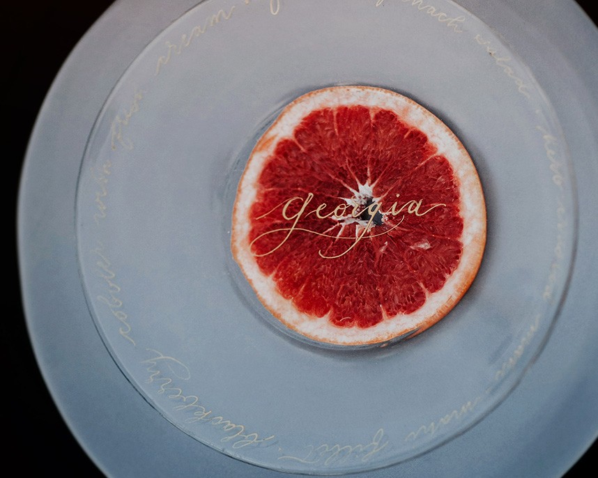 Inspired by the gorgeously deep hues of dark fruit, Malyn Made Weddings designed this show-stopping, moody styled shoot to prove that the wedding of your dreams can come to life just about anywhere! From the stunning, half-naked wedding cake courtesy of Sweet Devotion Cakery to the glamorous rentals from Party Pro Rents, this earthy and natural shoot is truly one-of-a-kind! Laurel & Marie created the most beautiful invitations and went above and beyond by hand-writing the menu on the edge of each dish. Romantic floral arrangements included pomegranates, blackberries and pears to emphasize the theme of the day. Keep scrolling for your daily dose of wedding inspiration and look out for a word from the planner! Cheers!