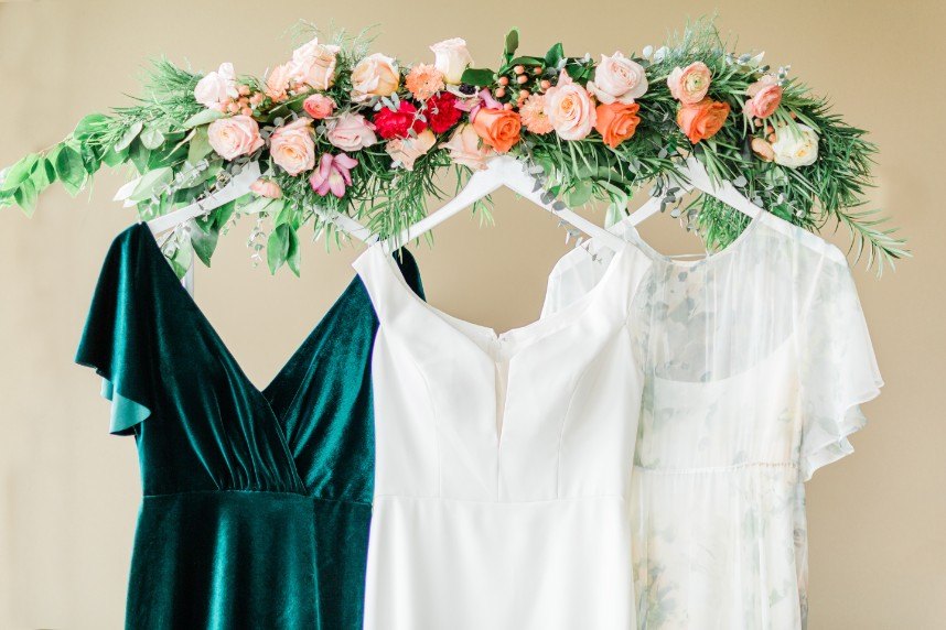 Providing the finest floral arrangements and designs, The Flower Shop Pryor, located northeast of Tulsa, is dedicated to you and you big day. We just love floral garland that so beautifully complements this selection of wintery gowns!