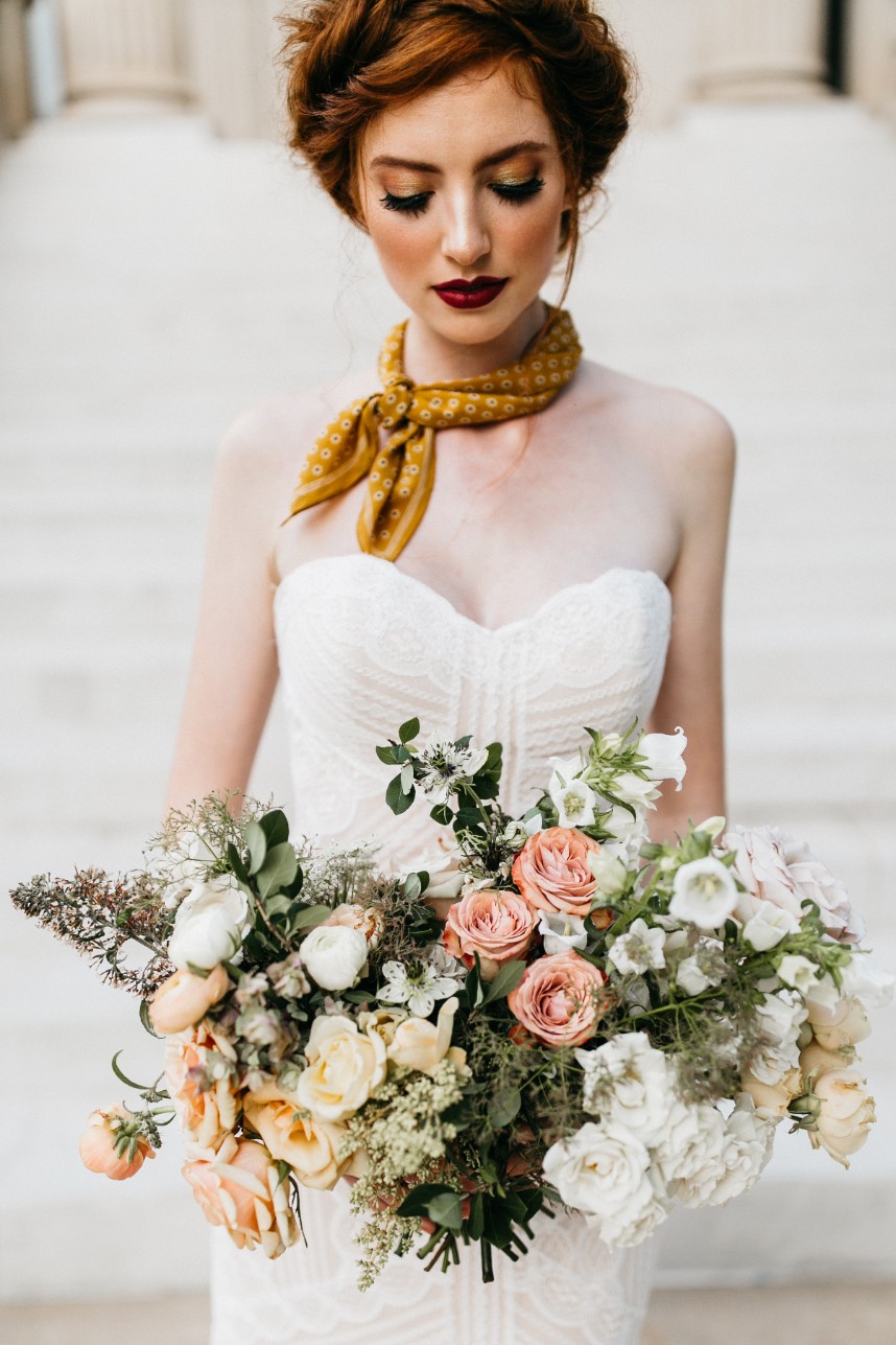 An incredible addition to the Tulsa wedding scene, Anthousai is a pro at executing romantic, freeform florals unique to your color palette and style. This rust, mauve, and pastel colored bouquet is just one example of how they’re pushing florals beyond the traditional color schemes.