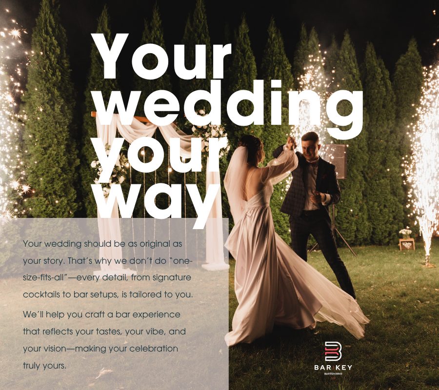 We don’t just pour drinks—we create signature cocktails inspired by your story. From personalized recipes and custom bar designs to our in-house alcohol calculator (so you never overspend), every detail is tailored to you. No tipping required. Skip the generic—get a bar experience that’s truly yours, totally unforgettable, and crafted for your vibe and budget. Cheers!