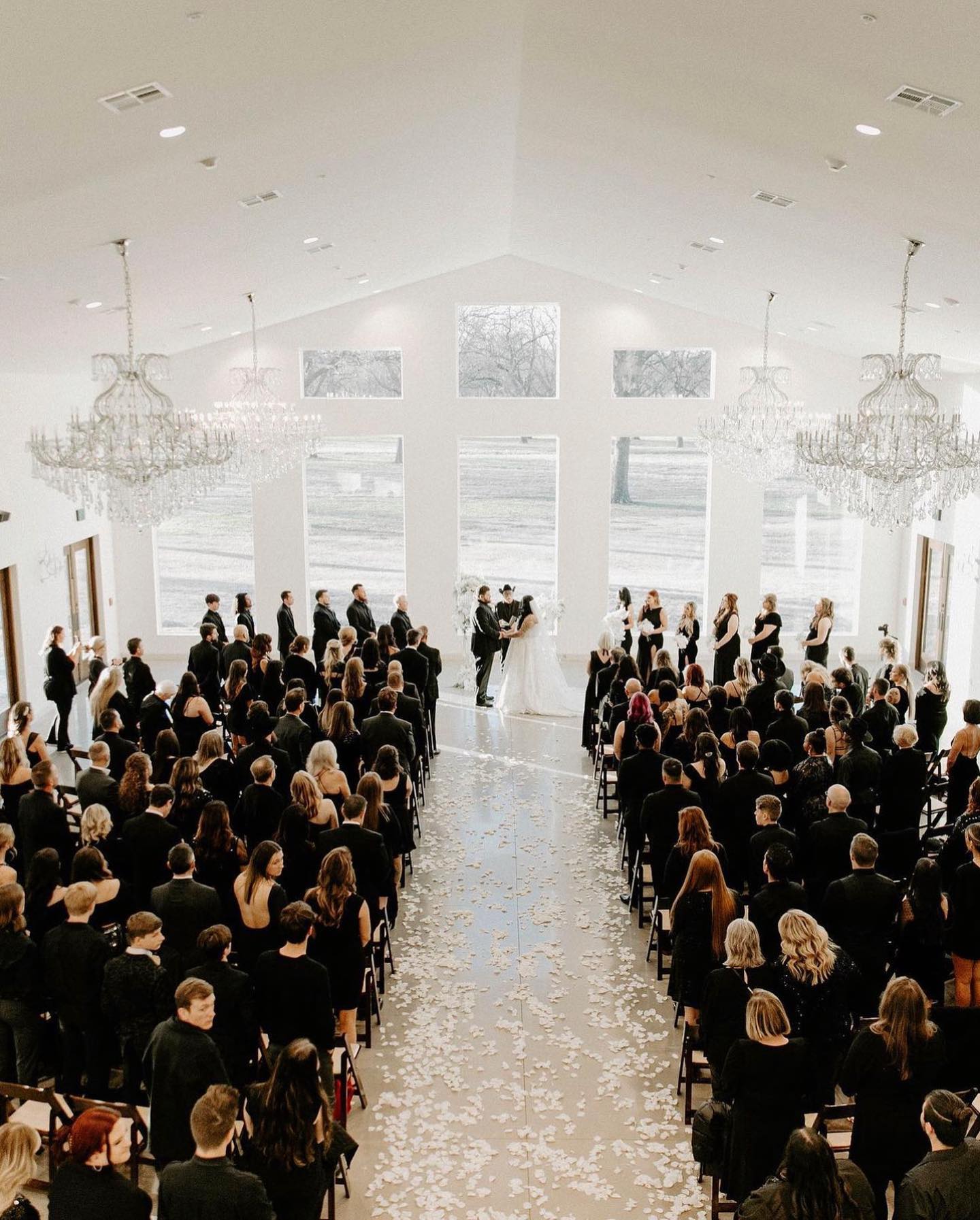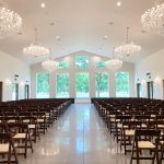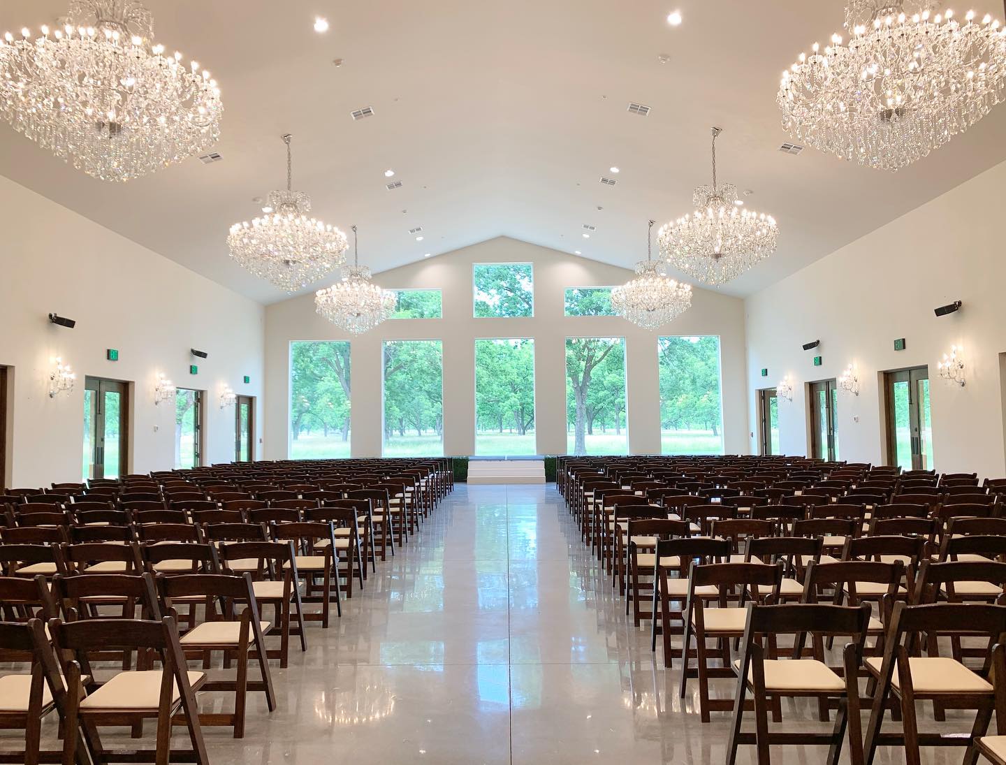 Pecandarosa Ranch is a beautiful wedding venue near Tulsa, Oklahoma; offering a stunning chapel with large windows overlooking the Pecan grove, providing an outdoor feel while being inside. Our spacious reception hall includes a built-in bar and beautiful decor. During cocktail hour, our outdoor patio area shines, setting the perfect atmosphere for guests to mingle and enjoy the moment.
