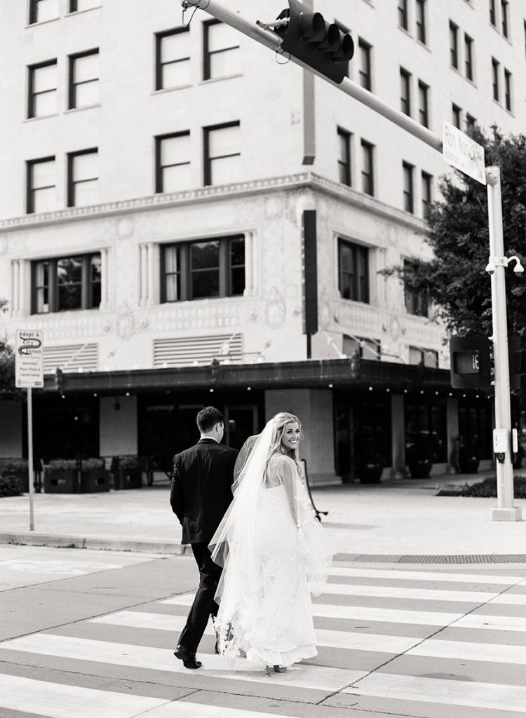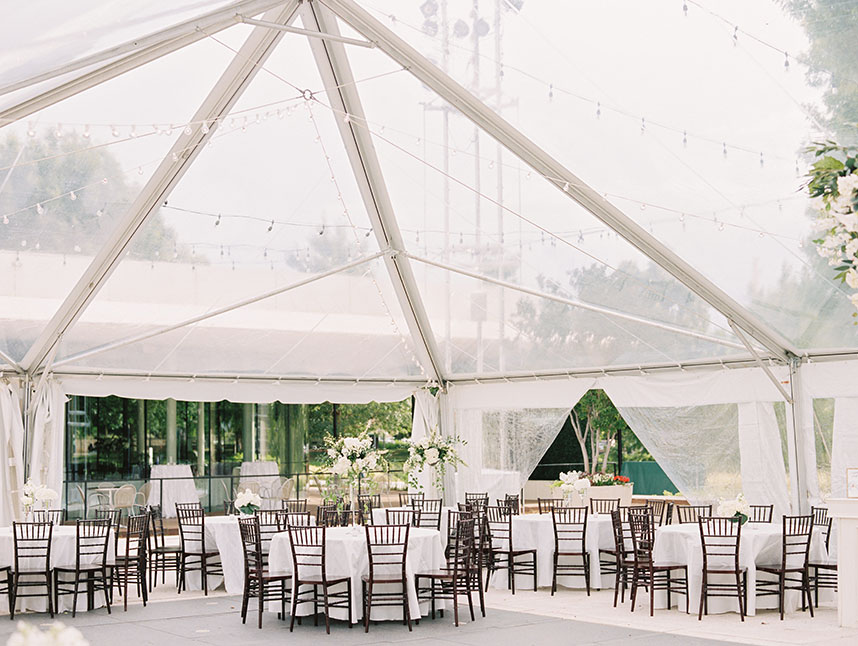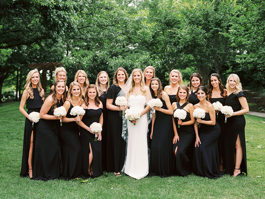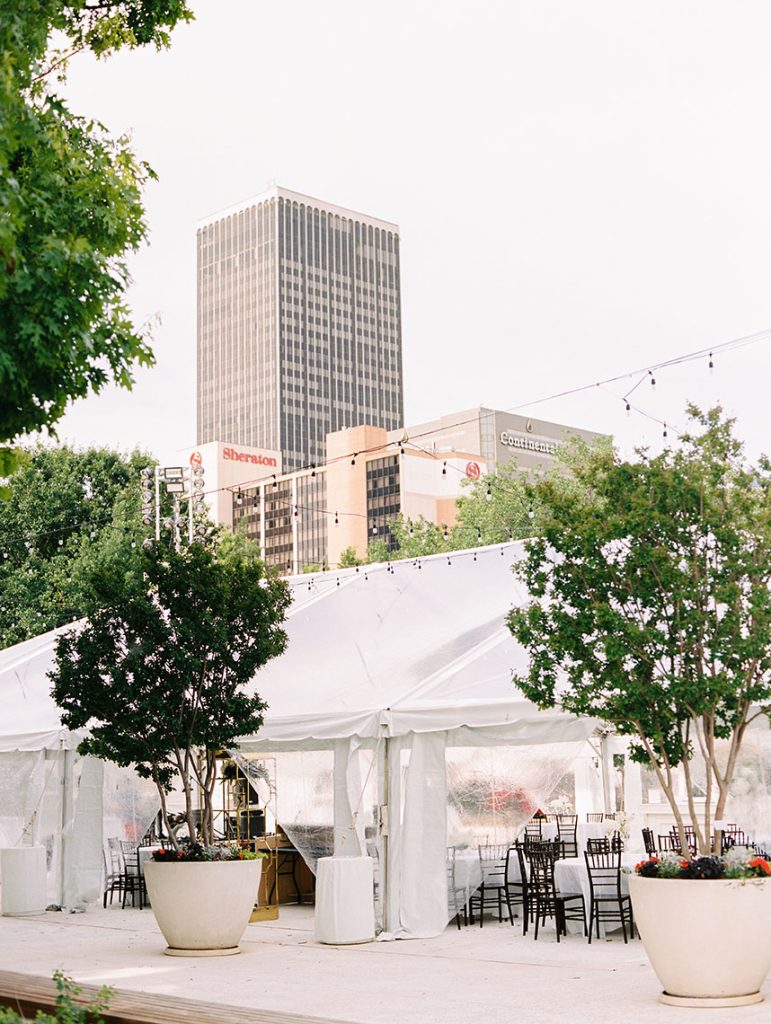 On a romantic summer night in the heart of beautiful downtown OKC, Bailey Gatewood and Dr. Andrew Mlady had a classic tented reception at Park House at Myriad Botanical Gardens, and we are so thrilled to share all the gorgeous details captured by Brett Heidebrecht Photography! This downtown garden wedding featured delicious food including catering from Abbey Road Catering and a stunning wedding cake from Amy Cakes. Take a peek at the crisp white florals and garden glam details below!