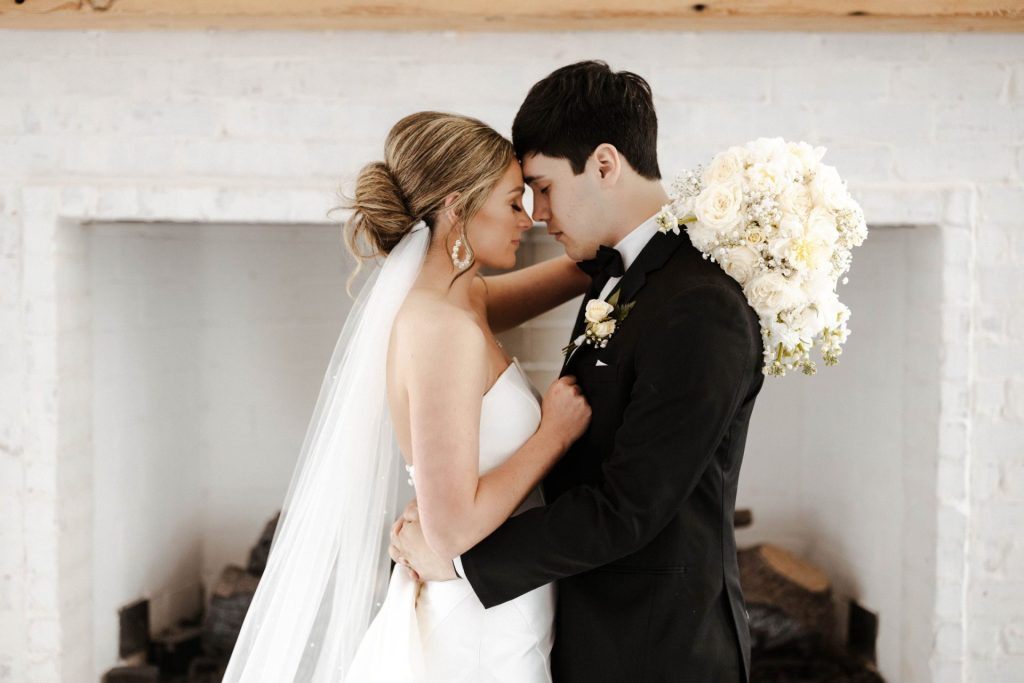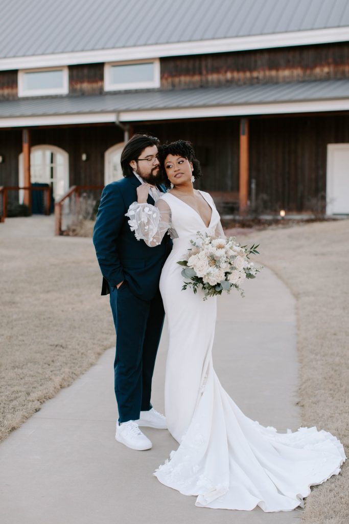 Sleek & Stunning Wedding Gown Paired With An Emerald Tux Delivers A Perfect Winter Wedding Look