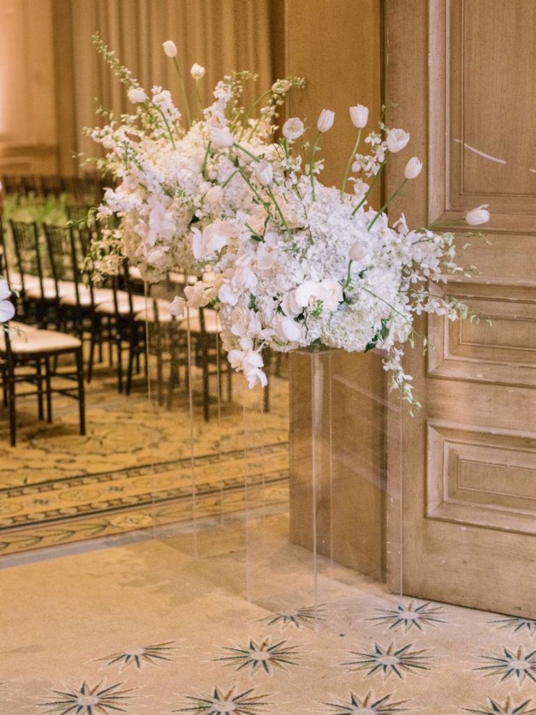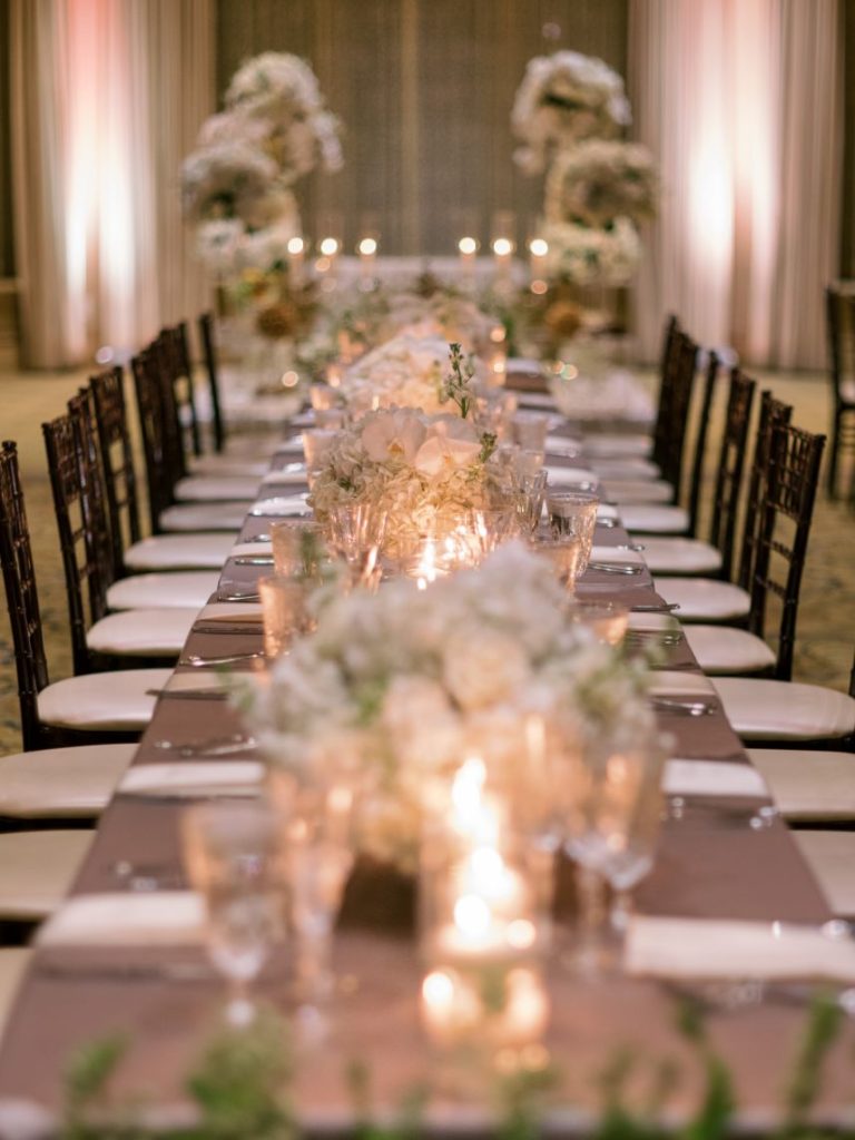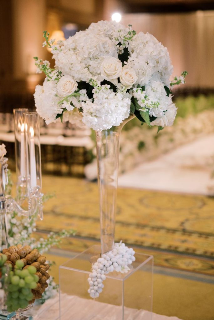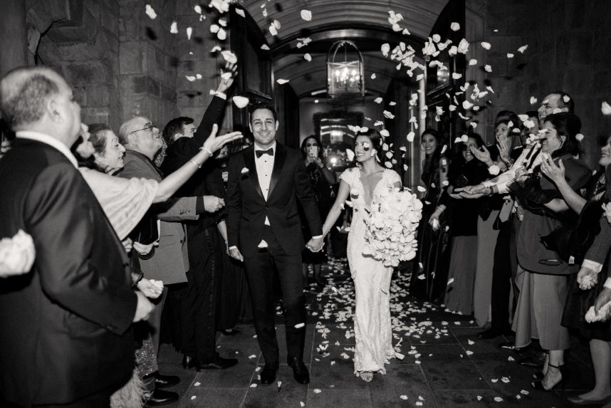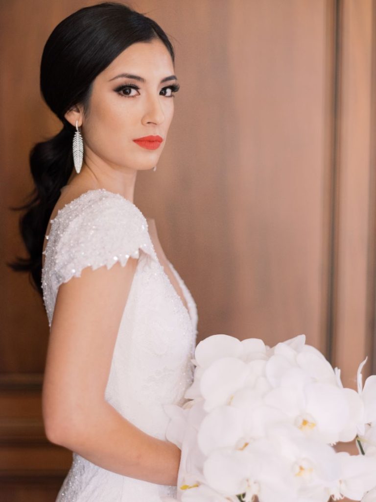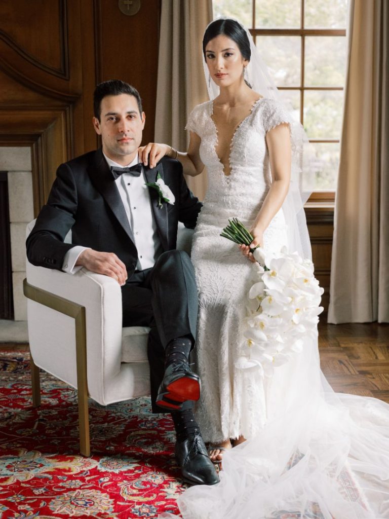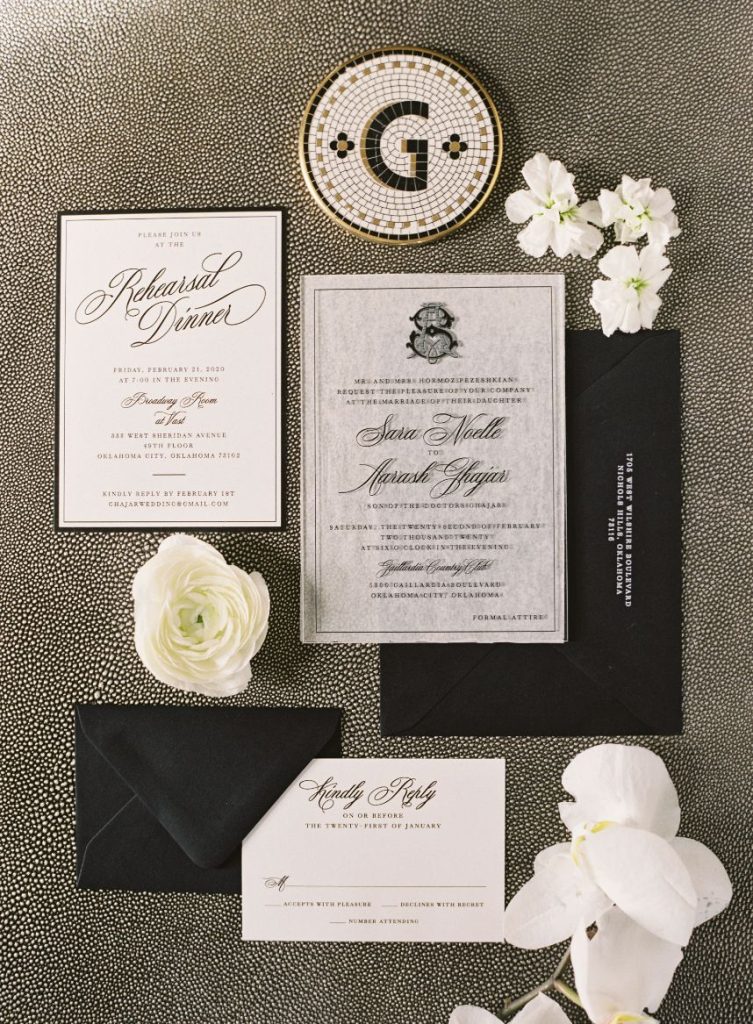 This stately black and white wedding was the perfect mixture of the bride and groom’s two cultures, with a touch of American traditions! As sharing their Persian and Asian cultures with their friends and wedding guests was very important to them, Sara and Aarash infused them in everything possible: from the food to the music, to having their wedding ceremony start with a traditional Persian ceremony. There was no better venue for this elegant affair than Gaillardia Country Club, whose gorgeous ballroom and lush outdoor courtyard elevated the overall style of their big day too well. Bundles of white roses and greenery from Tony Foss Flowers adorned the breathtaking indoor garden-style aisle leading to the romantic traditional Persian “Sofreh Aghd,” where the couple met to say their vows. Stunning black, white and gray decor from Marianne’s Rentals made for beautifully chic and moody tablescapes. Their simple yet luxurious wedding cake from Amy Cakes with white floral and draped-fabric textures combined to create the most unique cake possible. Featured as the cover bride on the Fall/Winter 2020 issue of Brides of Oklahoma, Sara could not have looked more exquisite in her intricately detailed bridal gown from J.J. Kelly Bridal Salon. Her lovely accessories from BC Clark Jewelers and swoon-worthy glam look by Brushed Salon and Makeup Studio of a softly curled low ponytail and a custom coral lip was the perfect winter bridal look. Brett Heidebrecht Photography captured the couple’s big day flawlessly, and we can practically feel their love shining through in each of their adorable photos. Scroll to watch their wedding video by Pen Weddings below and to see all of the stately details of their big day! Cheers to the Ghajars!